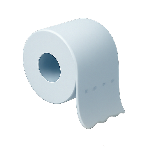 A clean and simple 3D illustration of a toilet paper roll, perfect for hygiene product marketing or home supplies. The design emphasizes a modern aesthetic.