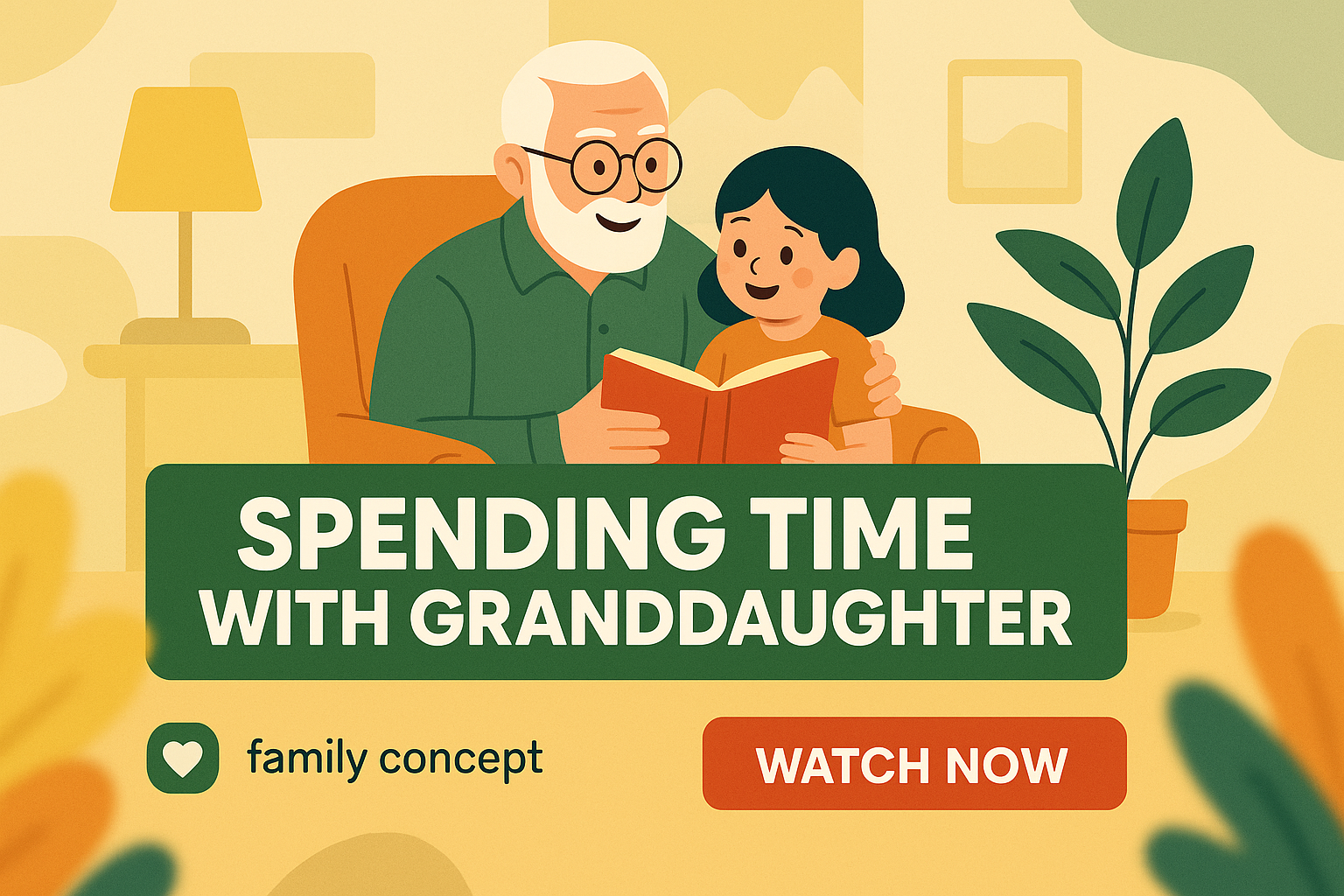 Heartwarming Family Illustration Featuring Grandfather and Granddaughter