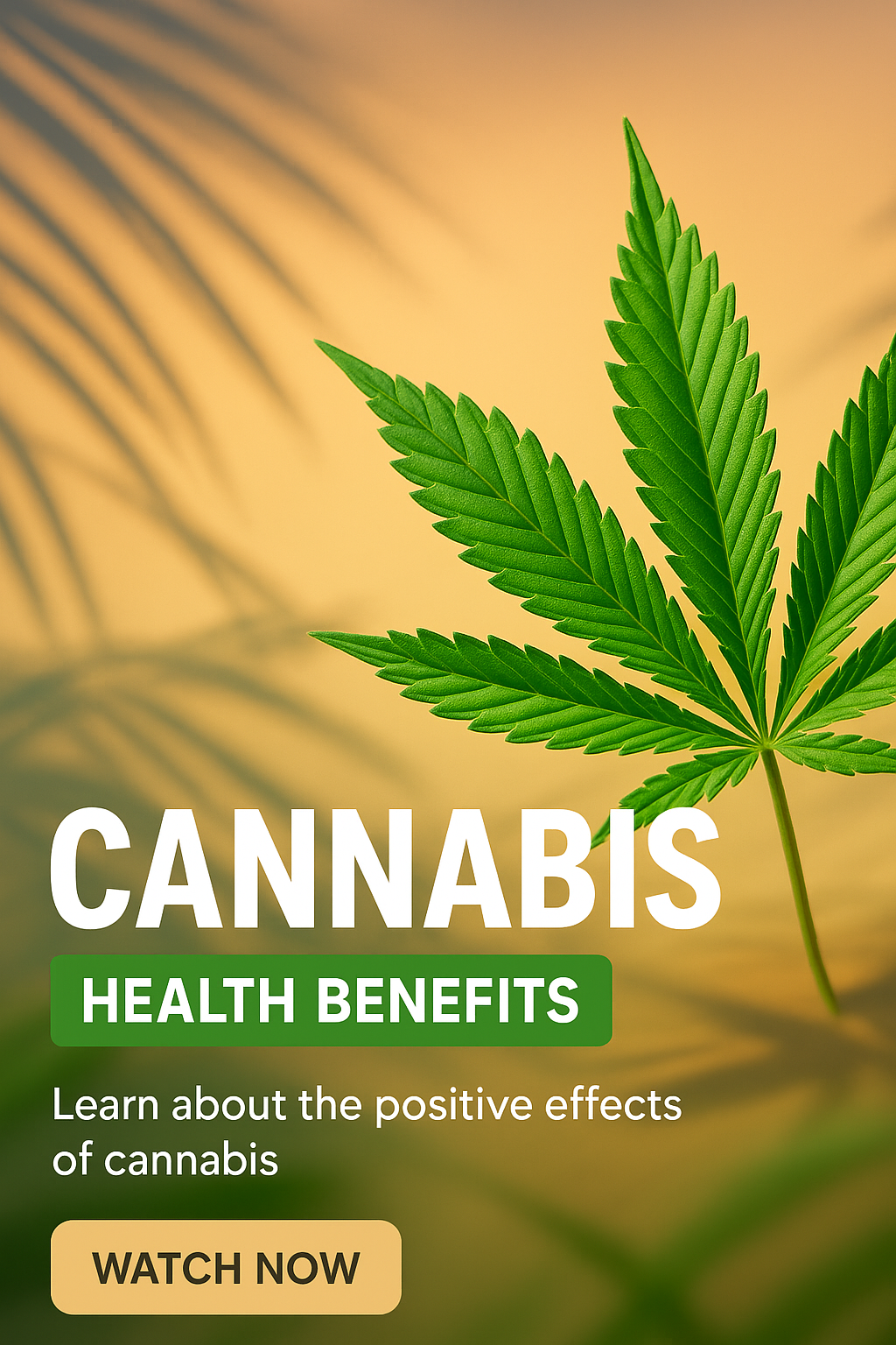 A visually appealing graphic highlighting the health benefits of cannabis, featuring a vibrant cannabis leaf. Ideal for educational content or health awareness campaigns.