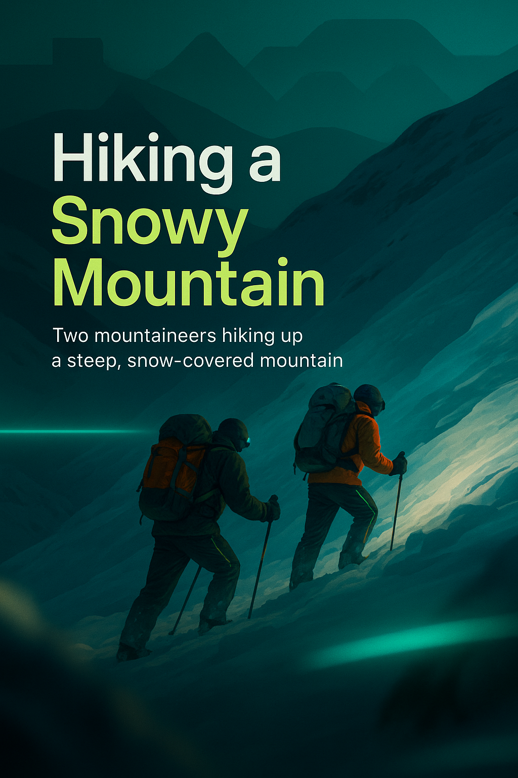 Dynamic Illustration of Mountaineers Hiking a Snowy Mountain
