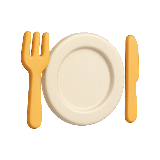 /Collection: /by davooda/Type: PNG/A clean and modern illustration featuring a fork, knife, and plate in a minimalist style. Ideal for food-related content, menus, or culinary platforms.