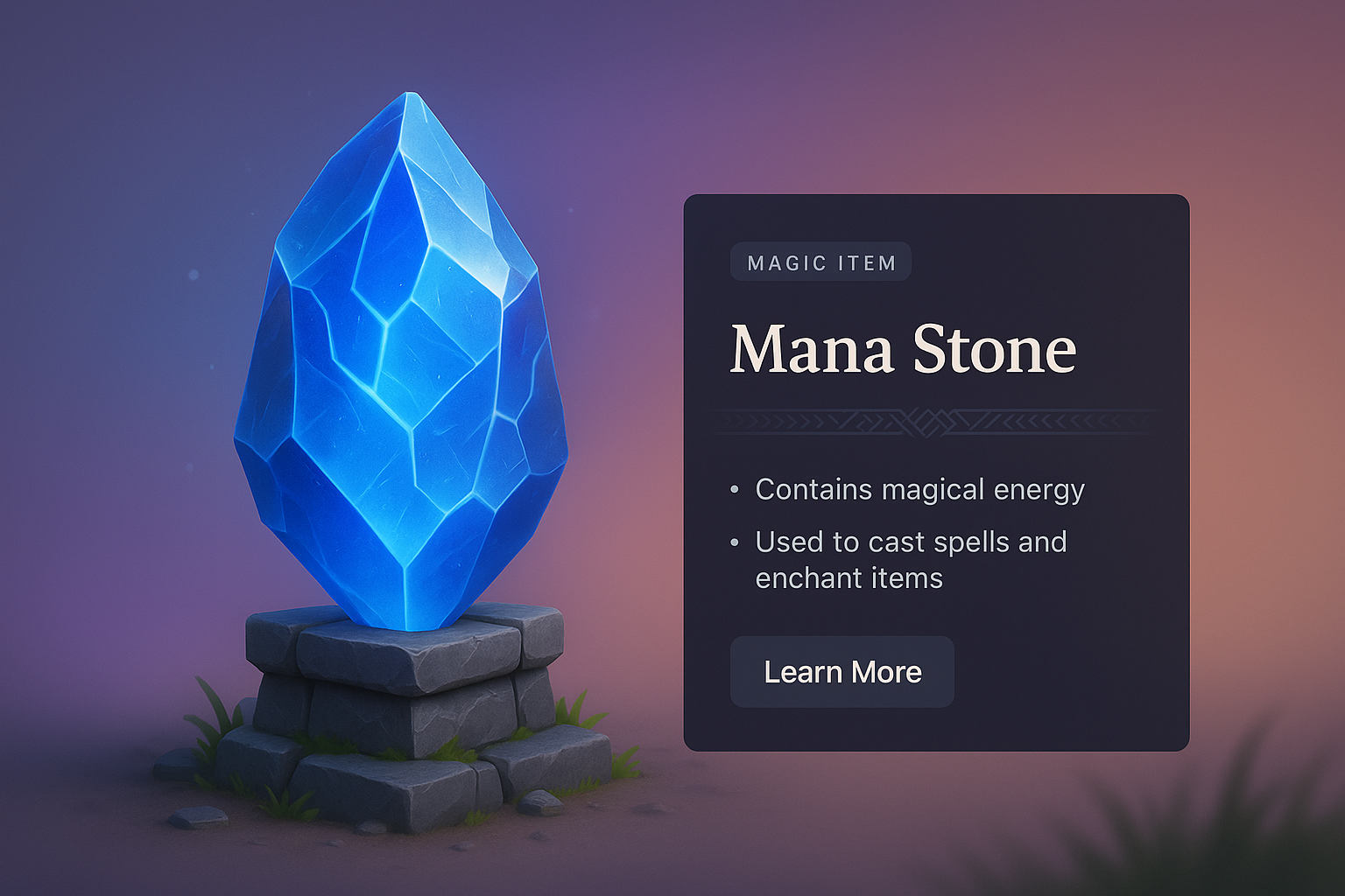 Enchanting 3D Illustration of a Mana Stone with Magic Source Info