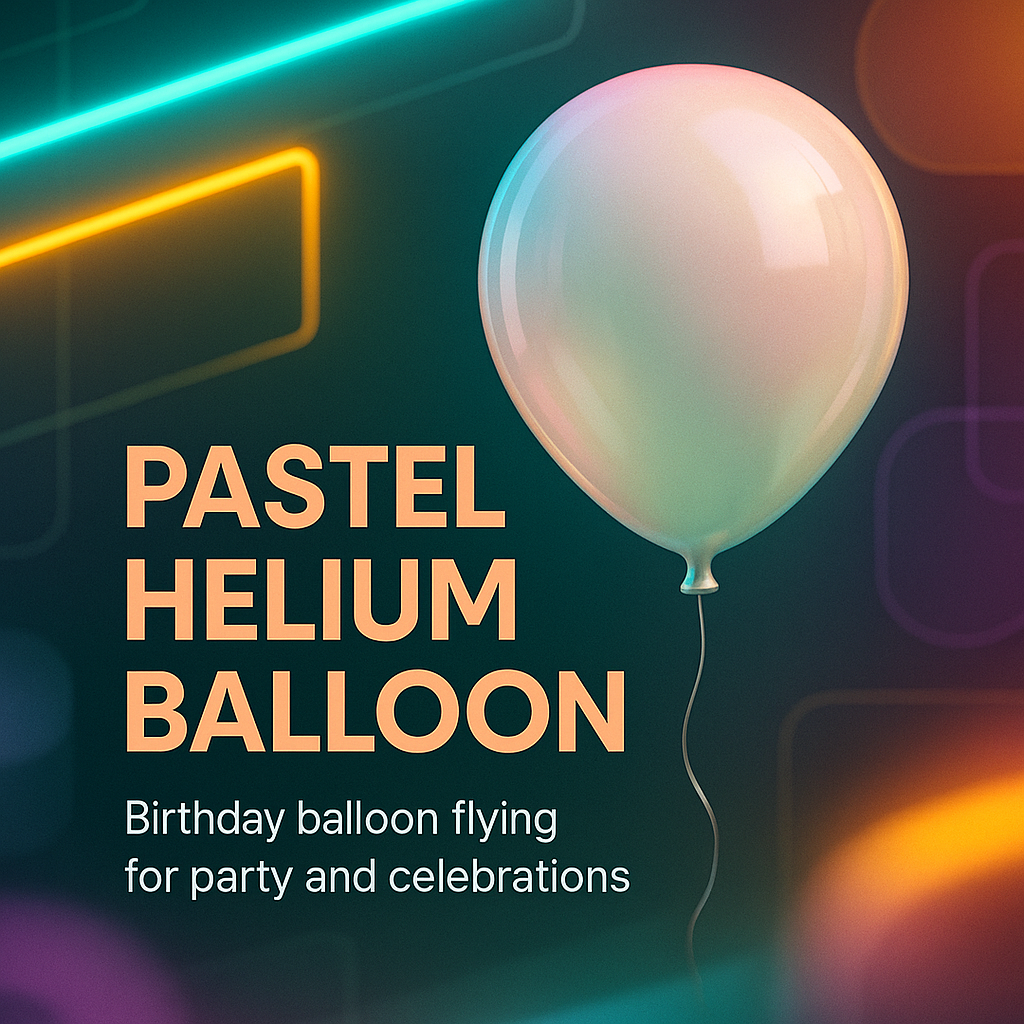 Vibrant graphic of a pastel helium balloon, ideal for birthday and celebration themes. The modern design features colorful lighting effects and a playful atmosphere.