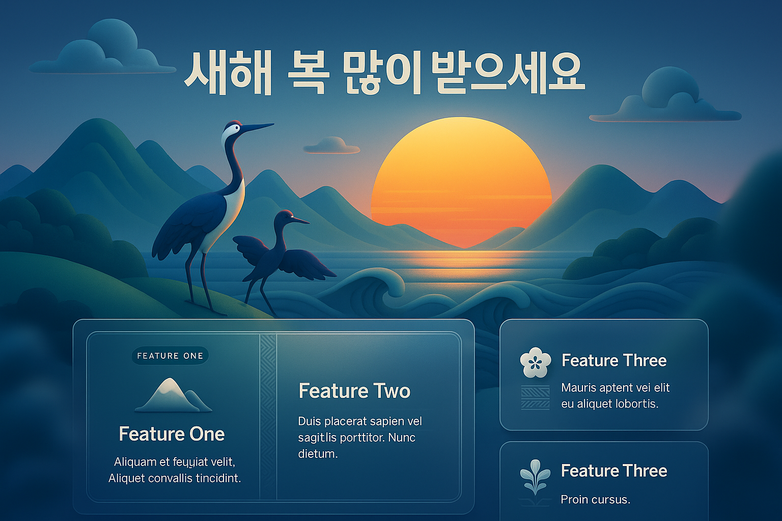 A captivating vector illustration depicting a sunrise over mountains with cranes. Features a stylish layout for showcasing text blocks and graphics.