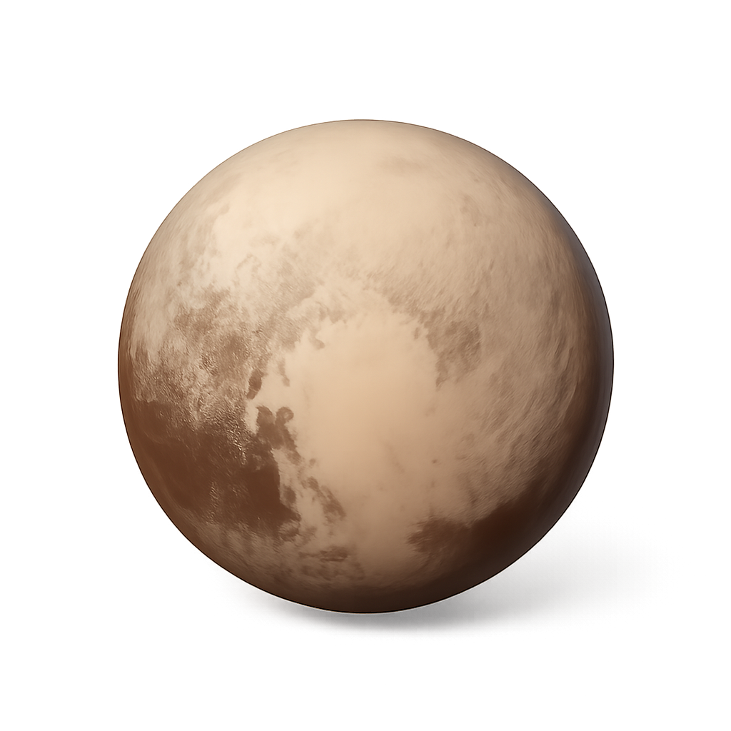 A detailed 3D representation of a planet featuring a textured surface with shades of brown and cream, resembling a celestial body.