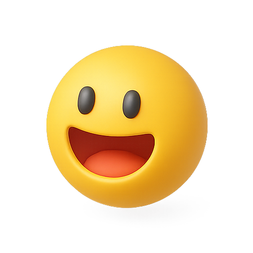 A vibrant 3D smiley face emoji featuring a cheerful expression. This graphic is ideal for expressing happiness and positivity in digital communications.