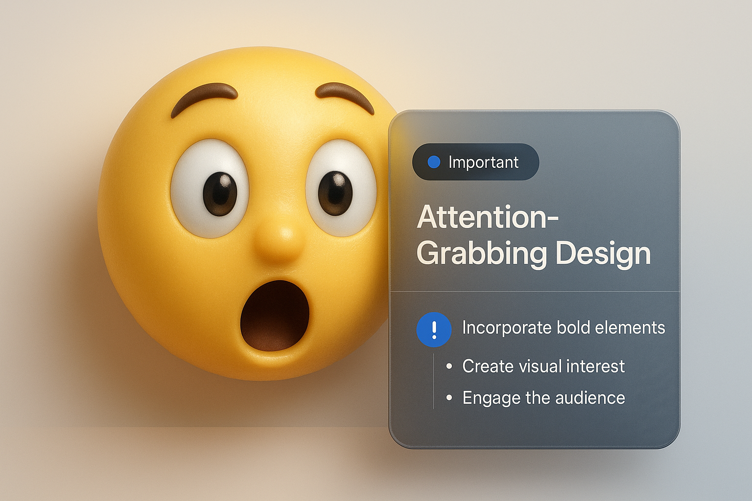 This image features a surprised emoji with wide eyes, alongside a modern design block containing important text. The background is light with a gradient effect, creating a clean and engaging layout.