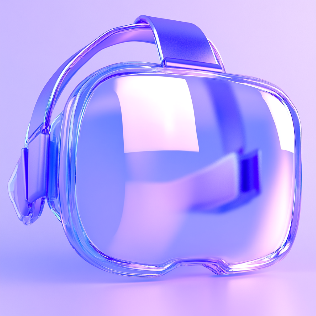 Stylized 3D rendering of a sleek virtual reality headset with a glossy finish, showcasing modern design elements ideal for tech-related promotions or presentations.