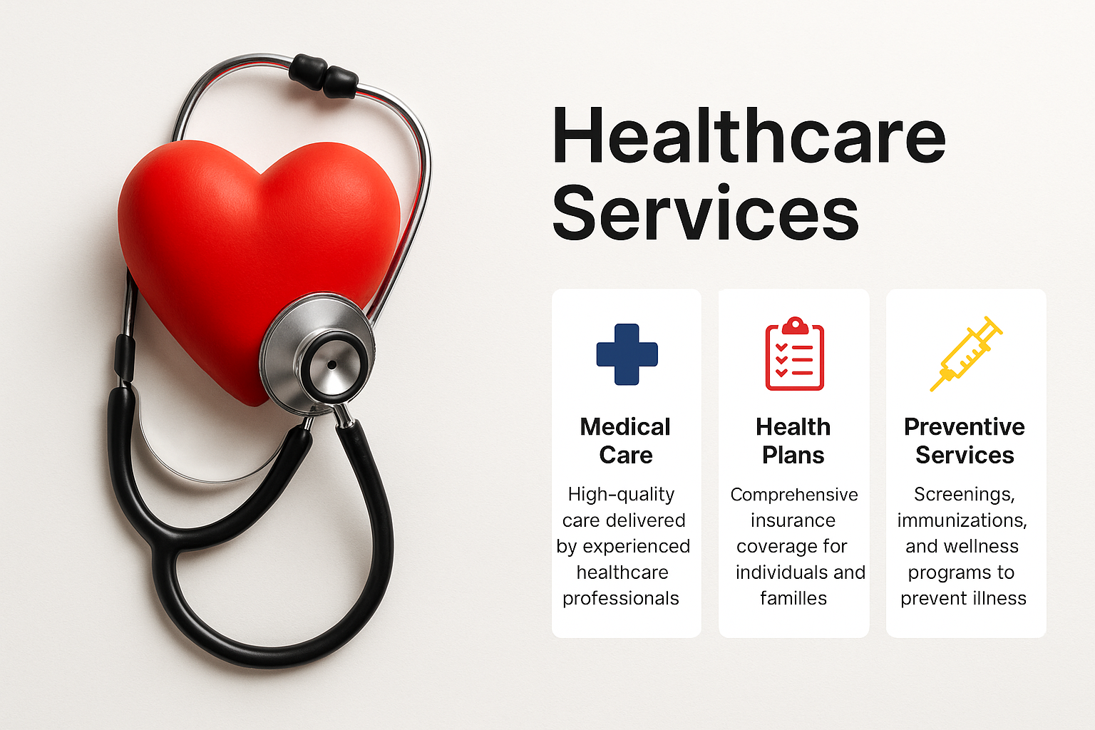 Healthcare Services Promotional Graphic with Stethoscope and Heart