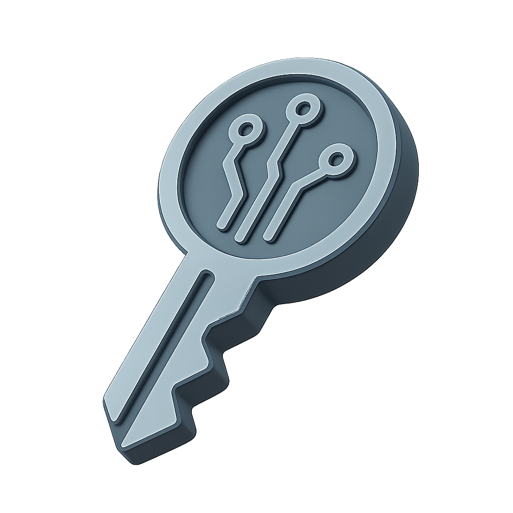 Stylish 3D Circuit Key Icon Design with Isometric View