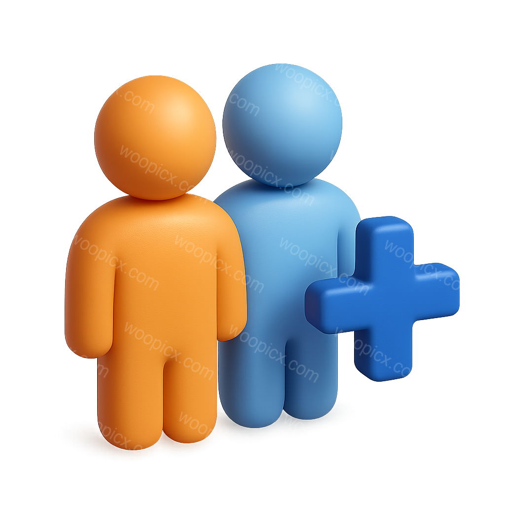 /Premium/Collection: /by davooda/Type: PNG/A visually appealing 3D icon depicting two stylized figures, one orange and one blue, standing together. The figures have a smooth, glossy finish and are set against a gradient background, enhancing their three-dimensional appearance.