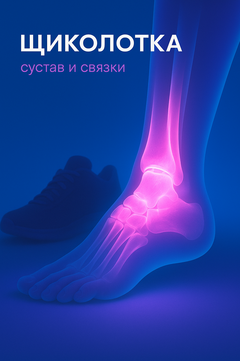A captivating image featuring a glowing ankle joint with a neon pink hue. The background is a solid blue, enhancing the vibrant, translucent effect of the design, conveying a sense of realism.