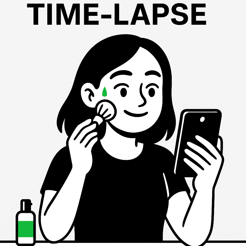 /Collection: /by davooda/Type: PNG/A minimalist graphic depicting a character applying skincare while using a smartphone, ideal for beauty tutorials or social media posts about skincare routines.