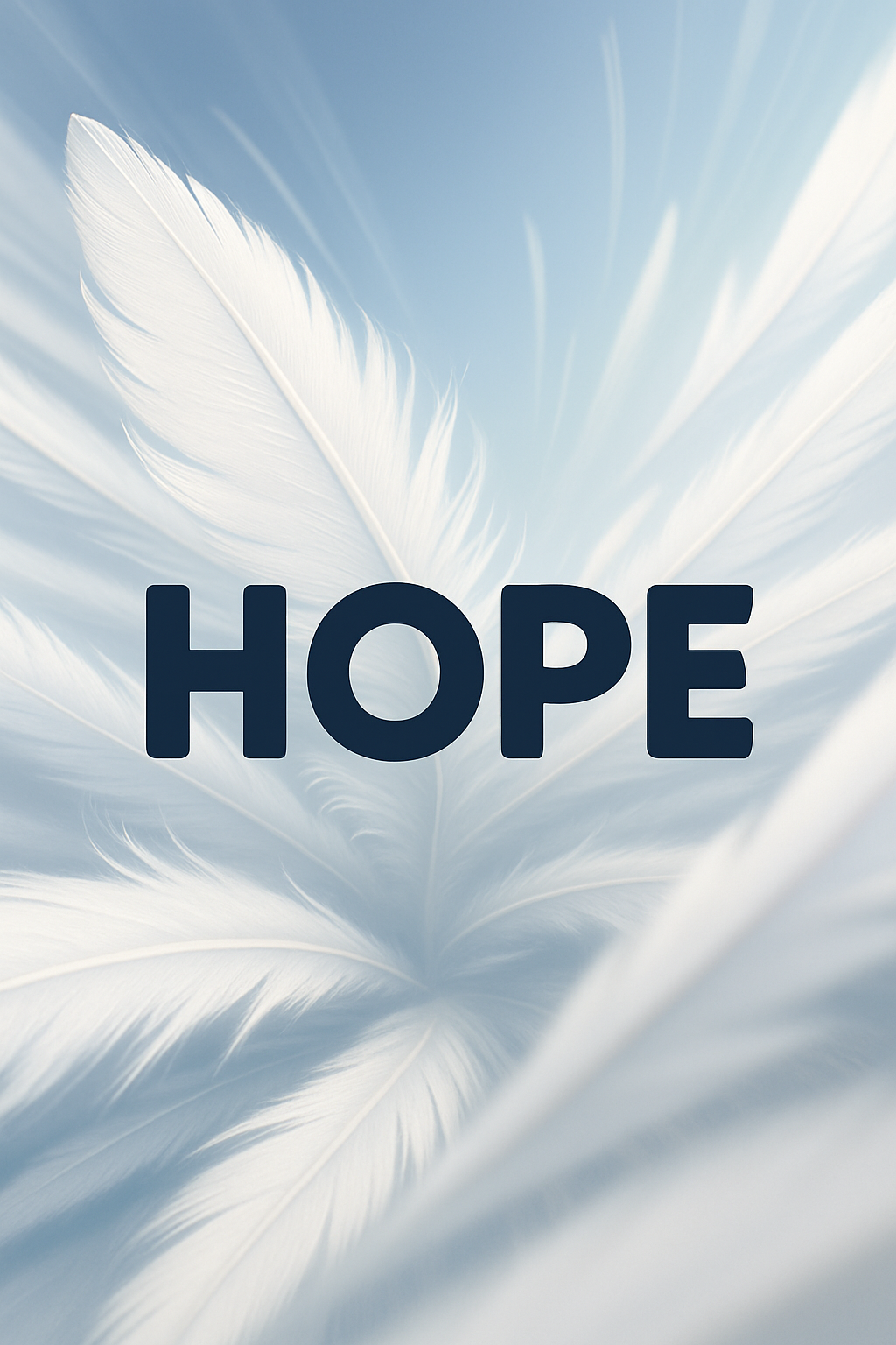 /Collection: /by davooda/Type: PNG/A serene closeup of delicate feathers against a soft gradient background, with the word 'HOPE' prominently displayed. The image evokes peace and spirituality, ideal for inspirational themes.