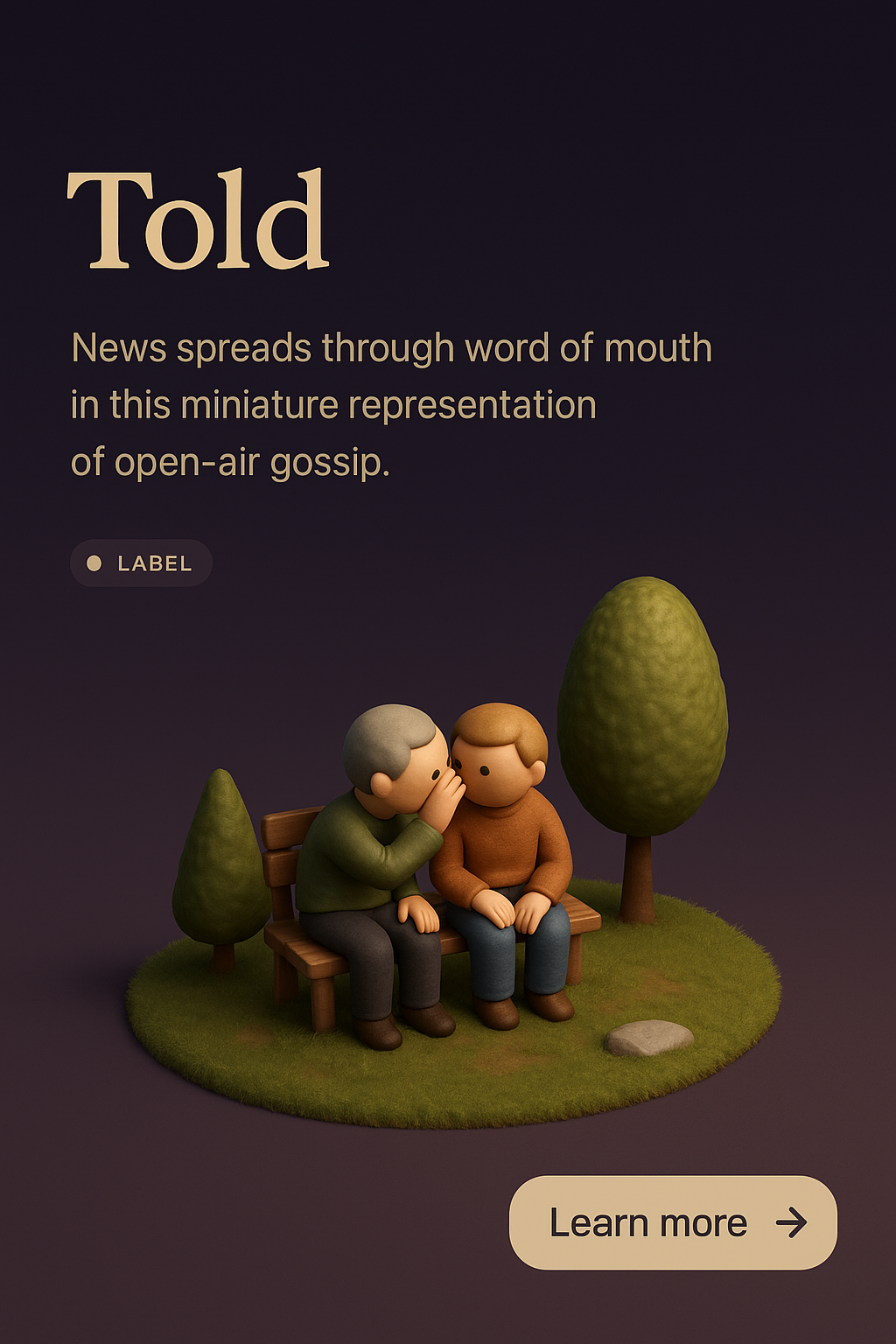 /Collection: /by davooda/Type: PNG/A 3D illustration featuring two characters whispering on a bench, surrounded by simple trees on a grassy area. The dark gradient background enhances the focus on the characters.