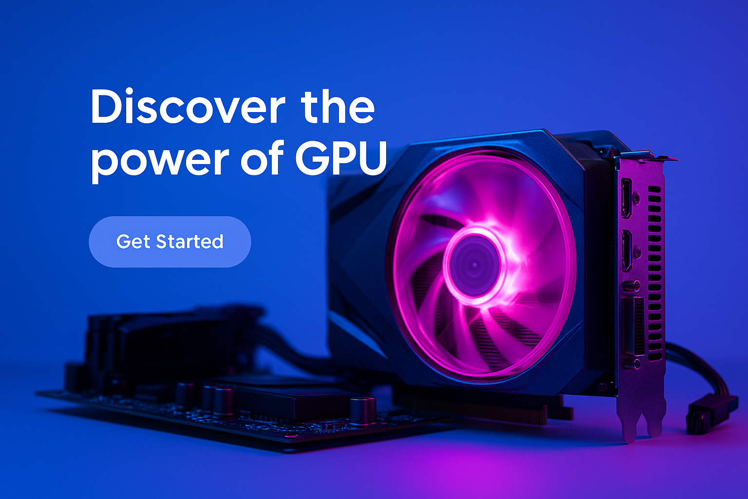 Vibrant Neon GPU with Glowing Effects on Blue Background