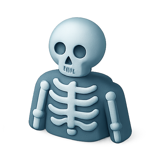 A 3D stylized skeleton figurine featuring soft blue tones and a simplistic design. Ideal for Halloween-themed decorations or playful child-friendly designs.