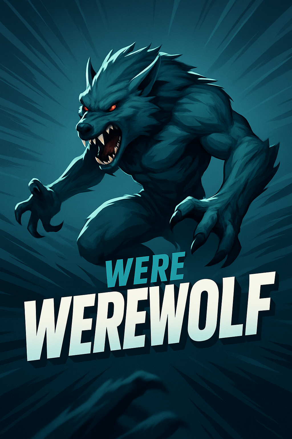 /Collection: /by davooda/Type: PNG/A fierce werewolf illustration features dynamic lines radiating from the center. The creature is depicted in a powerful pose with a bold title highlighting the word 'WERE'.