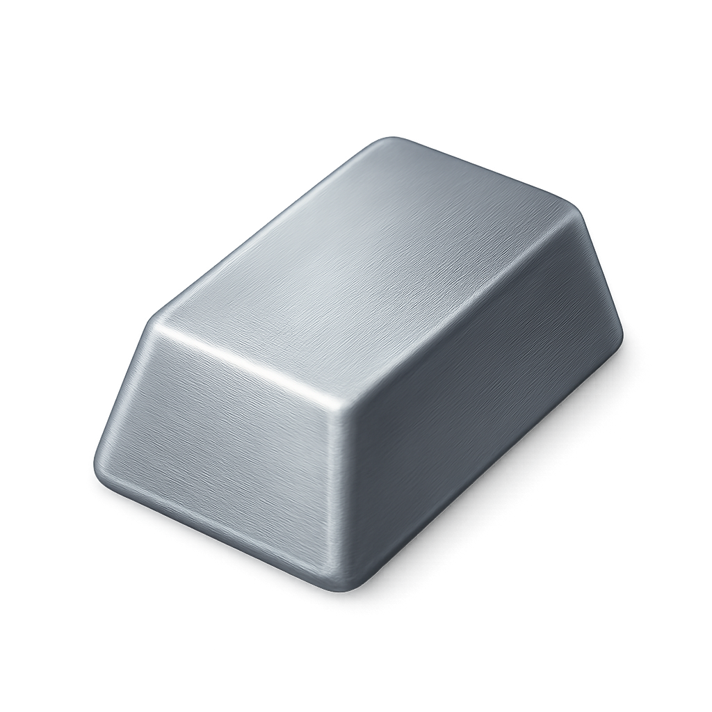 A sleek, 3D aluminum icon presented in a three-quarter isometric view, featuring a smooth, brushed metallic texture on a transparent background.