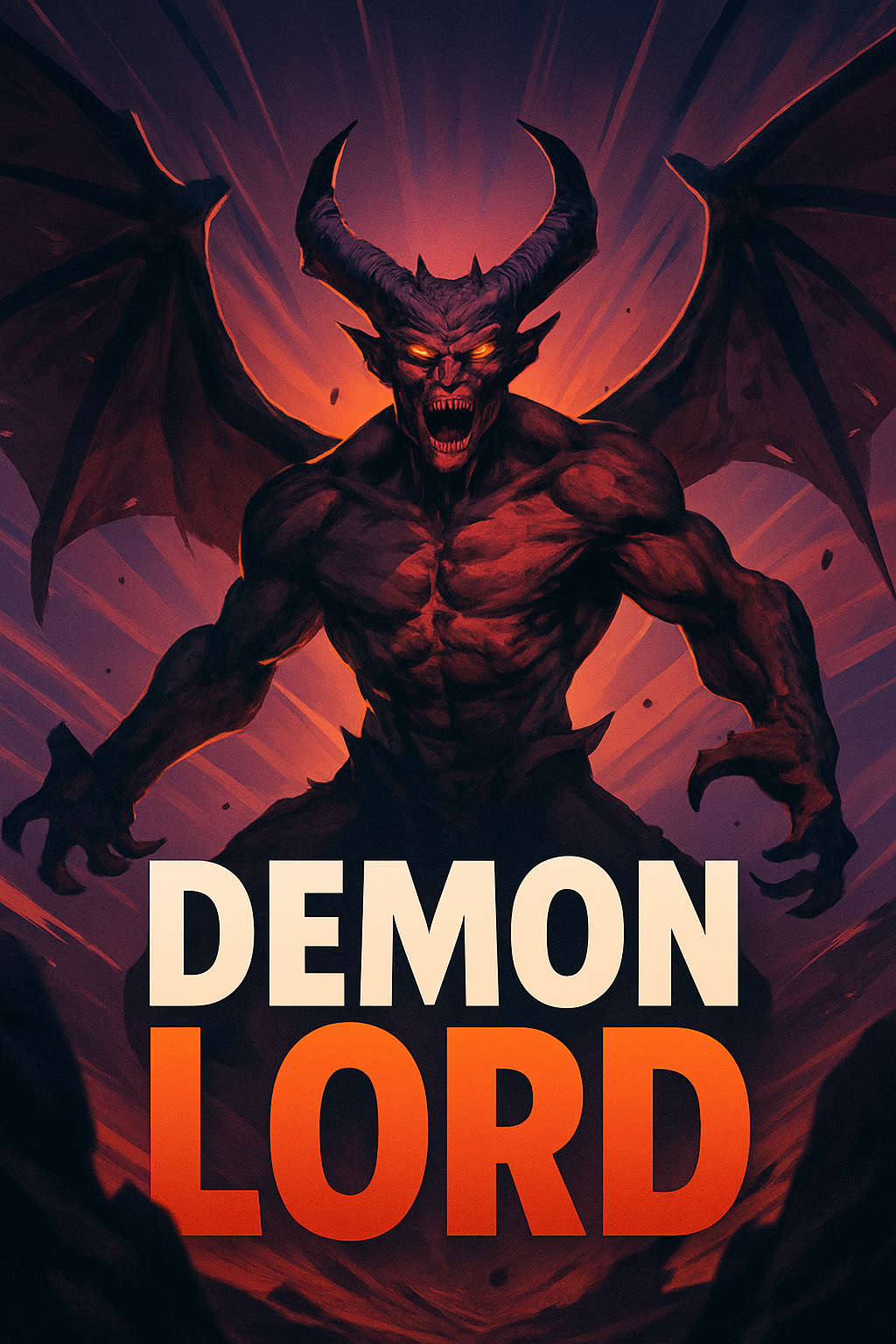 /Collection: /by davooda/Type: PNG/A powerful demon lord depicted in a dynamic pose, exuding strength and menace. The illustration features vibrant colors and layered composition, with an emphasis on bold typography.