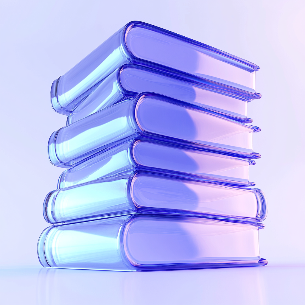 A visually striking representation of a stack of glossy books, showcasing a contemporary design style with smooth lines and a soft color palette, ideal for educational or literary themes.