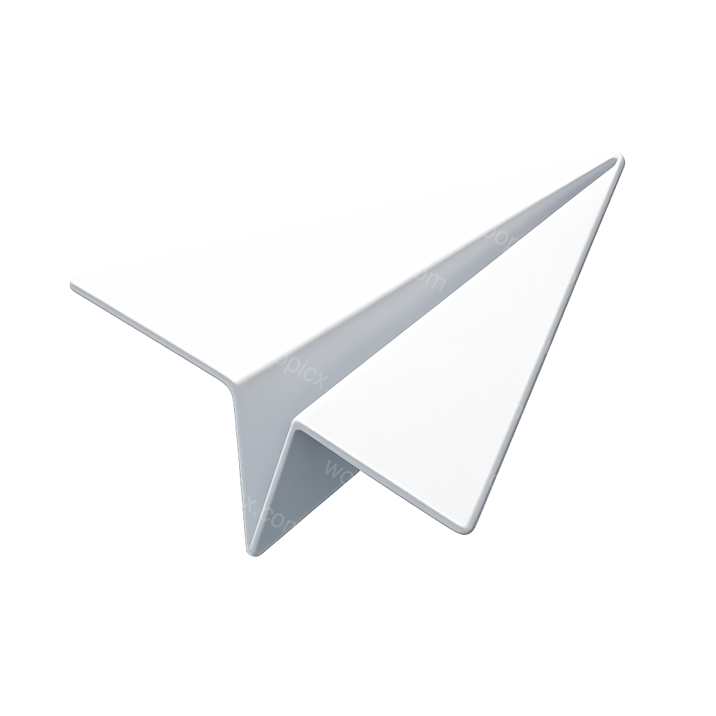 /Premium/Collection: /by davooda/Type: PNG/A sleek, minimalist 3D representation of a paper airplane, designed with a transparent background. The airplane has a polished look and is depicted in a three-quarter isometric view.
