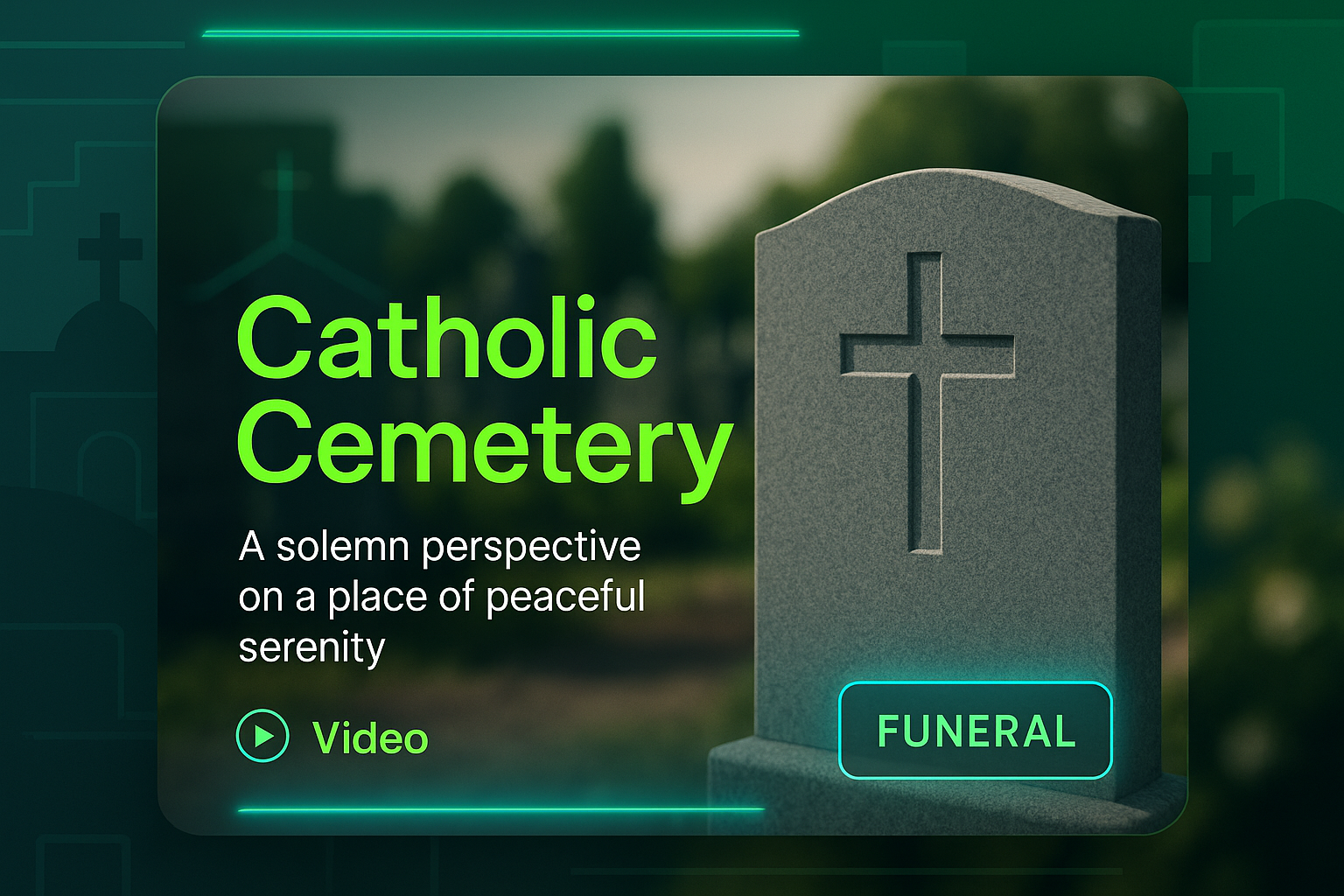 /Collection: /by davooda/Type: PNG/A visually calming video thumbnail depicting a gravestone in a cemetery, designed to evoke a sense of peace and solemnity, ideal for content related to funerals or memorials.