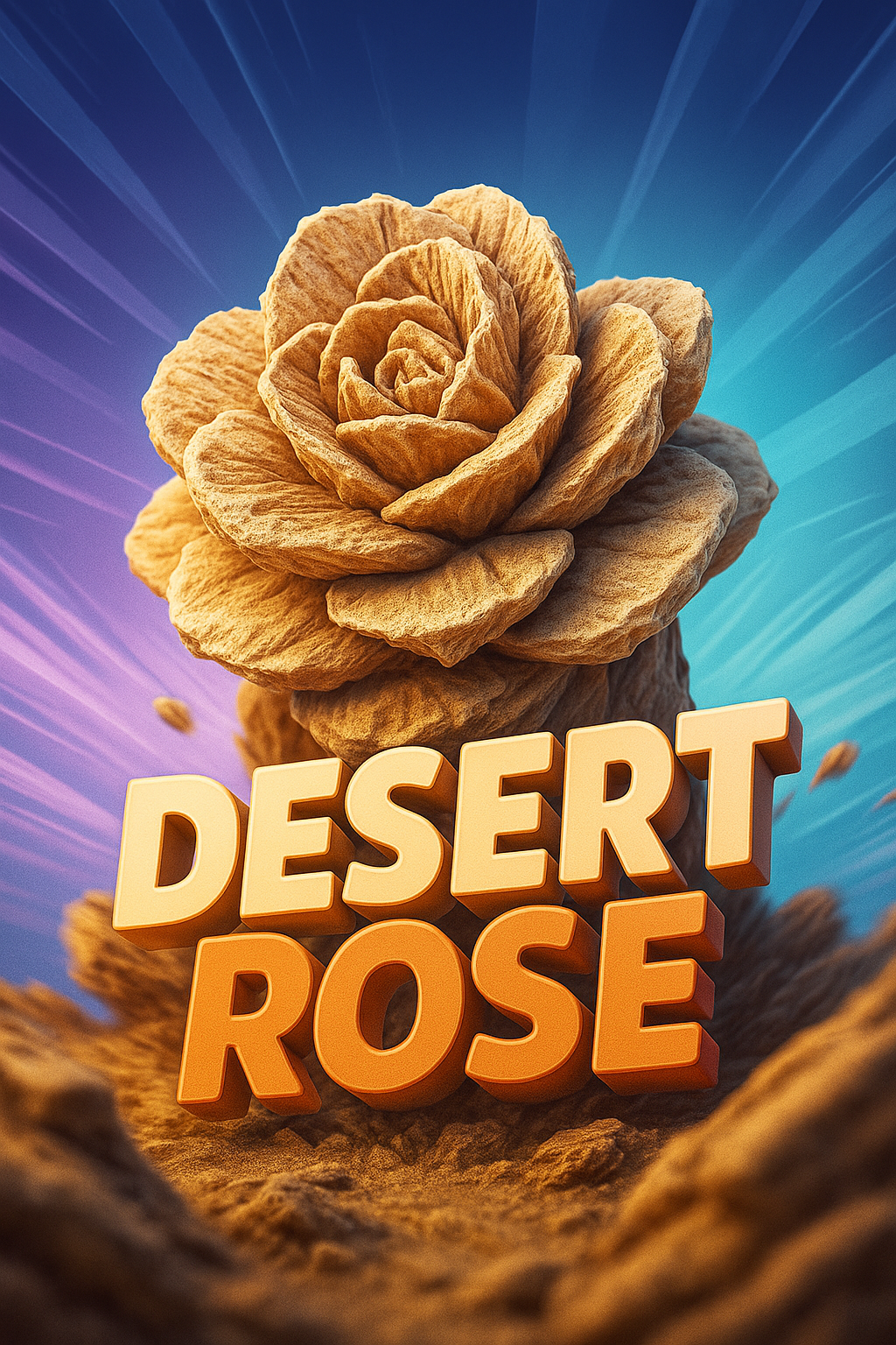 /Collection: /by davooda/Type: PNG/A visually striking 3D illustration of a desert rose, set against a gradient background. The bold title 'DESERT ROSE' stands prominently, enhancing the dynamic feel of the scene.