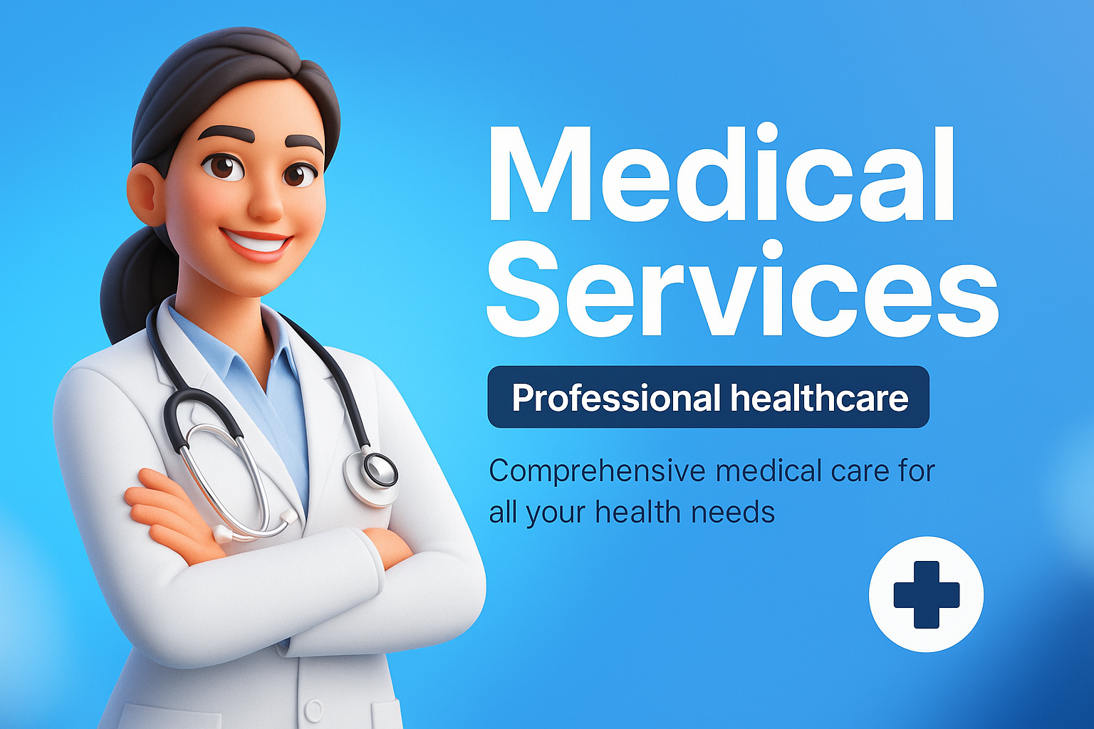 Portrait of a Smiling Female Doctor with Healthcare Services Info