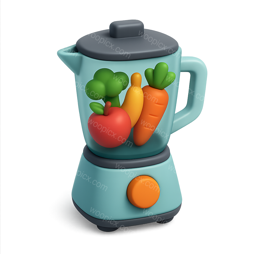 /Premium/Collection: /by davooda/Type: PNG/A vibrant 3D blender filled with stylized fruits and vegetables, including a tomato, carrot, and bell pepper, set against a smooth gradient background.