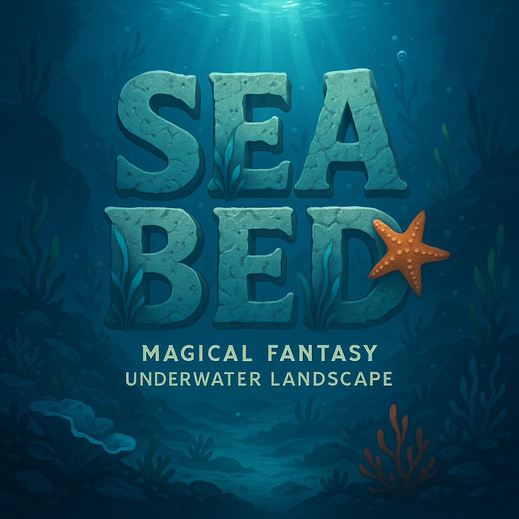 Vibrant underwater landscape illustration featuring whimsical typography and marine elements, ideal for creative projects and gaming themes.