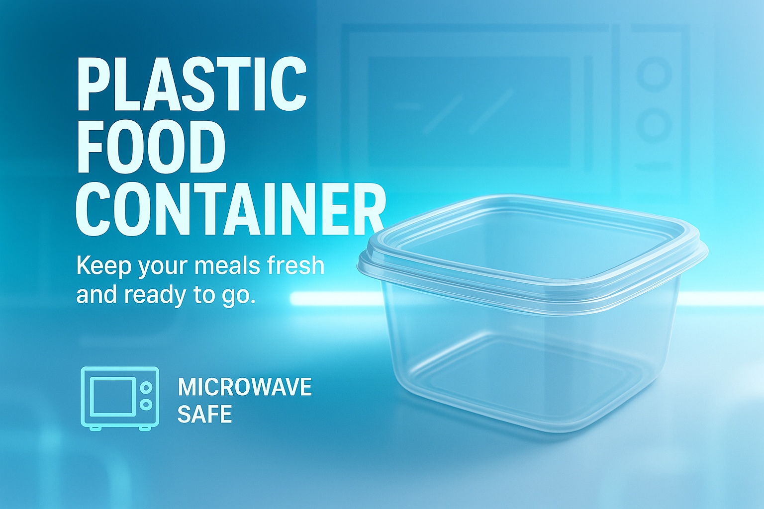 Promotional Graphic for Plastic Food Container with Microwave Safety Feature