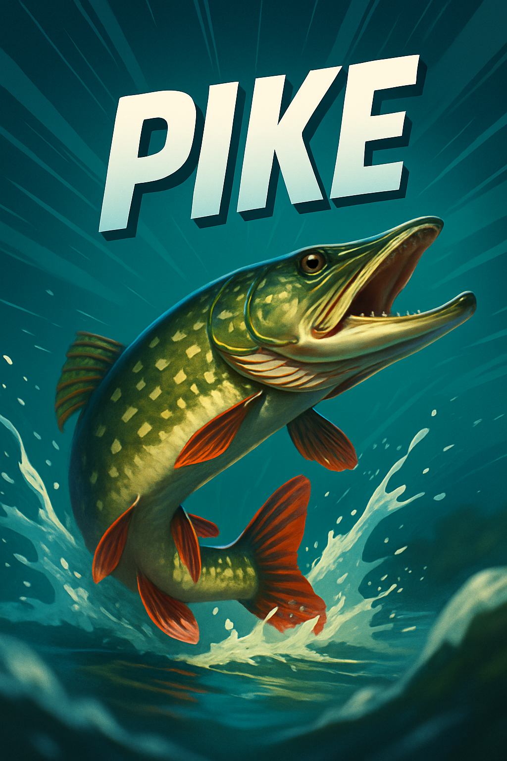 Dynamic Illustration of a Pike with Bold Typography