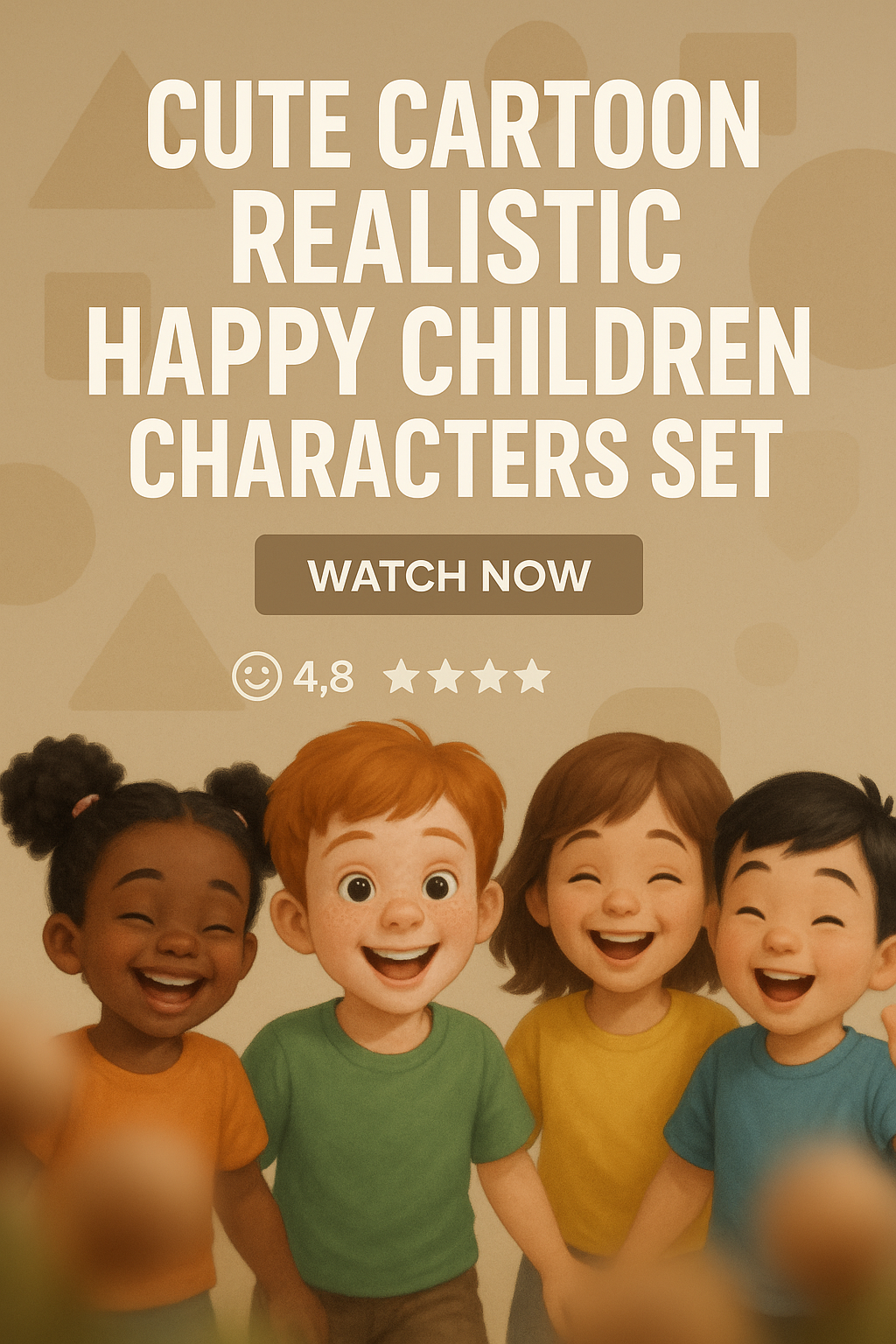 /Collection: /by davooda/Type: PNG/Colorful illustration featuring a set of happy, cartoon-style children characters designed for use in educational or promotional materials. Vibrant and engaging.