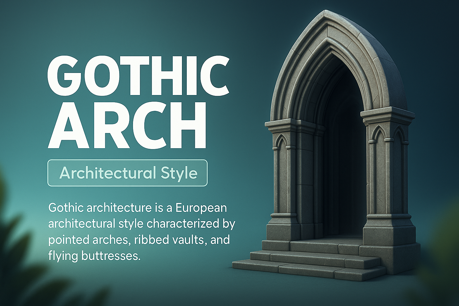 /Collection: /by davooda/Type: PNG/This image features a detailed 3D rendering of a Gothic arch, highlighting its architectural style with pointed arches and ribbed vaults against a smooth gradient background.