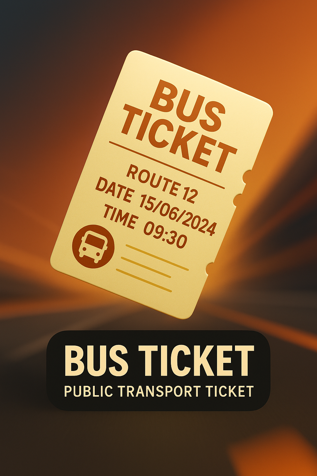 This image features a stylized bus ticket against a blurred background, ideal for promoting public transport services. The design uses warm colors and minimalistic elements.