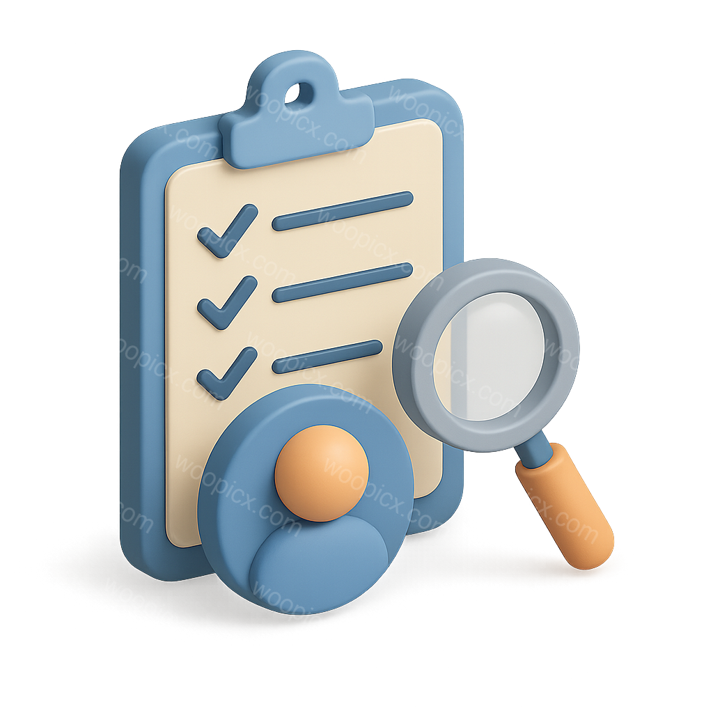 /Premium/Collection: /by davooda/Type: PNG/A visually appealing 3D icon depicting user research. It features a clipboard with checklists and a magnifying glass, all rendered with a soft, isometric design.