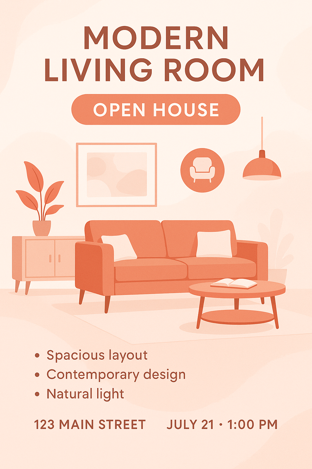Stylish Open House Announcement for Modern Living Room