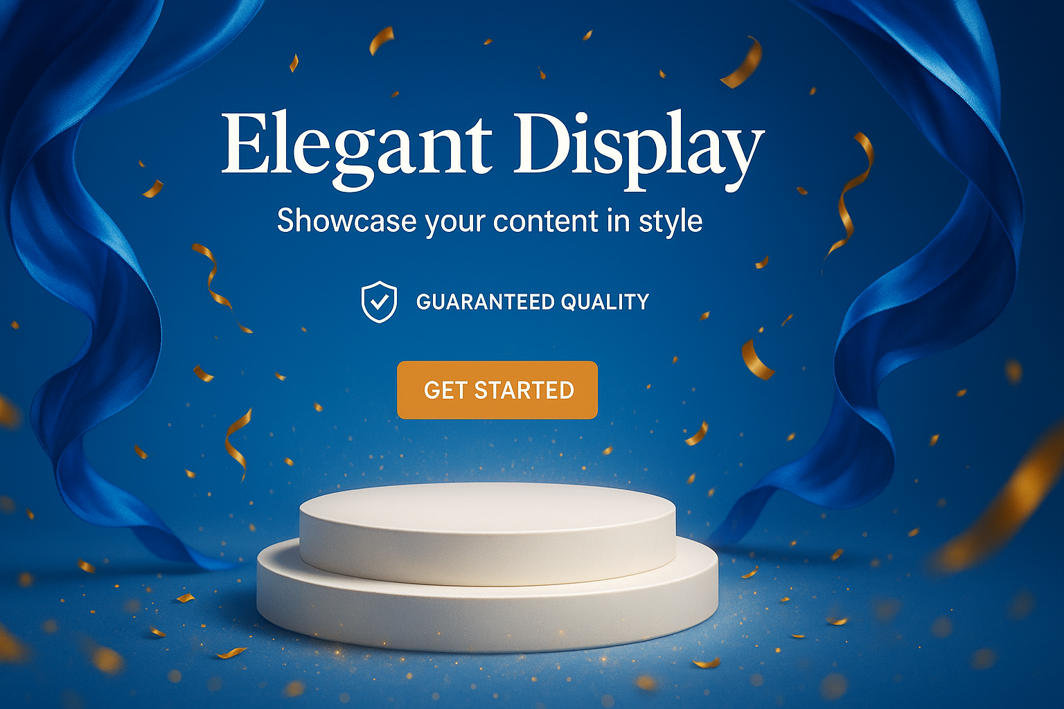 Elegant Product Showcase Banner with Ribbons and Confetti