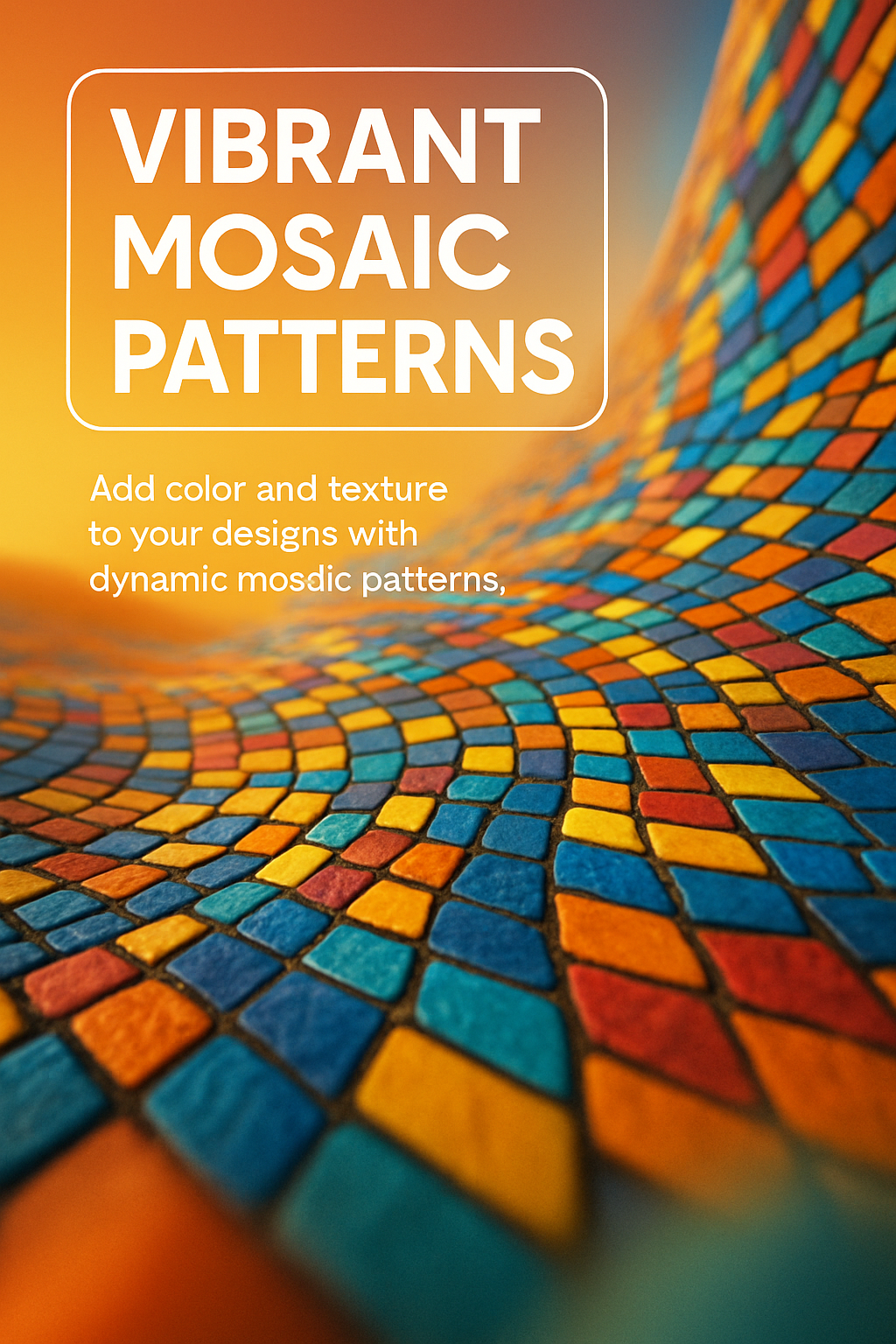 A close-up image of vibrant mosaic patterns showcasing a colorful array of tiles. Ideal for design inspiration, this graphic emphasizes texture and color dynamics.