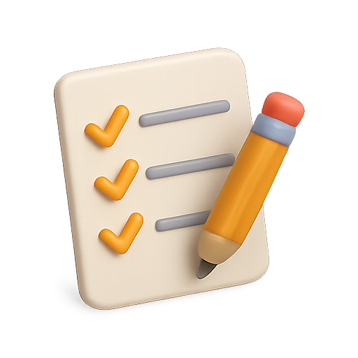 A modern and playful checklist icon featuring a notepad with checkmarks and a pencil, ideal for task management or productivity applications.