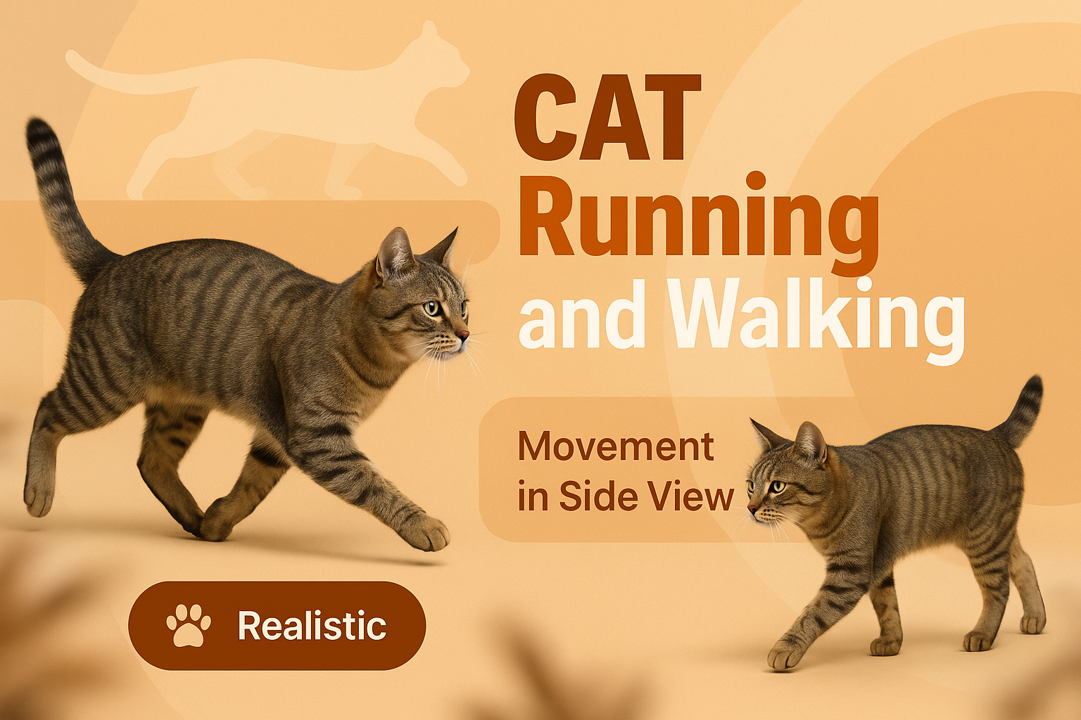 /Collection: /by davooda/Type: PNG/A visually engaging graphic showcasing the movements of cats running and walking, designed with a warm color palette and realistic illustrations. Ideal for educational content or pet-related materials.
