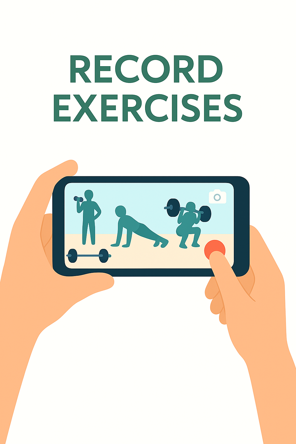 /Collection: /by davooda/Type: PNG/A vector illustration depicting hands holding a smartphone to record various exercises, showcasing a fitness theme ideal for health and workout applications.