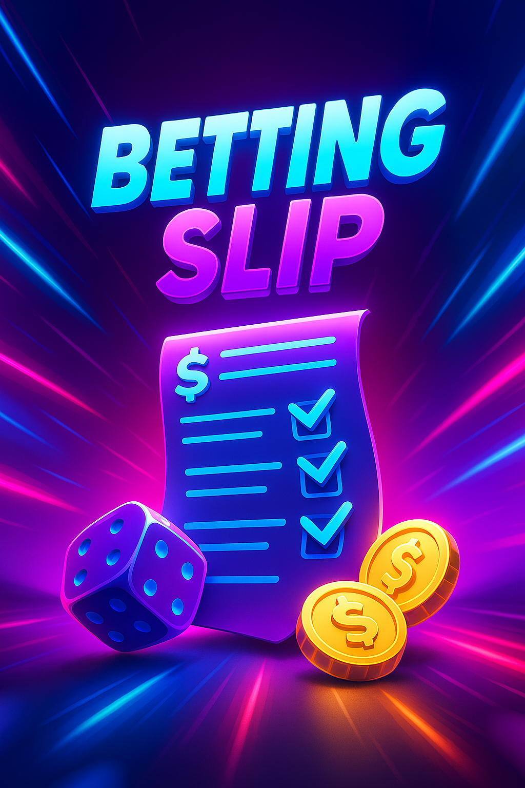/Collection: /by davooda/Type: PNG/A vibrant, neon-themed illustration of a betting slip, featuring glowing elements, dynamic lines, and colorful coins. The design captures a lively atmosphere with a smooth gradient background.