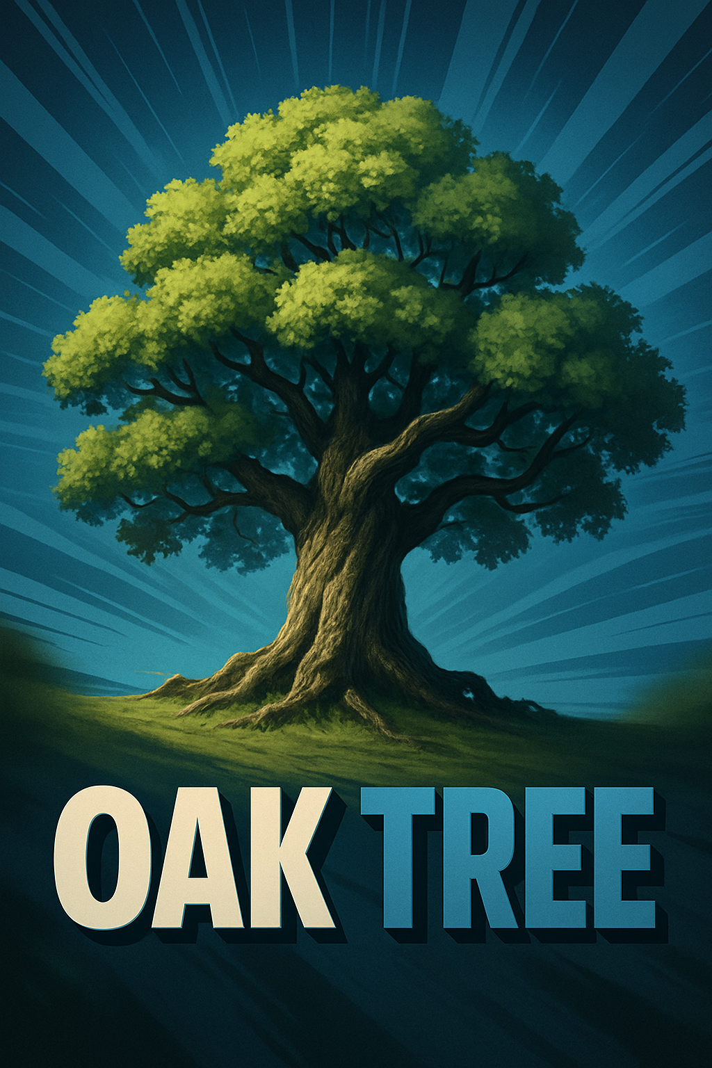 Dynamic Oak Tree Illustration with Vibrant Background