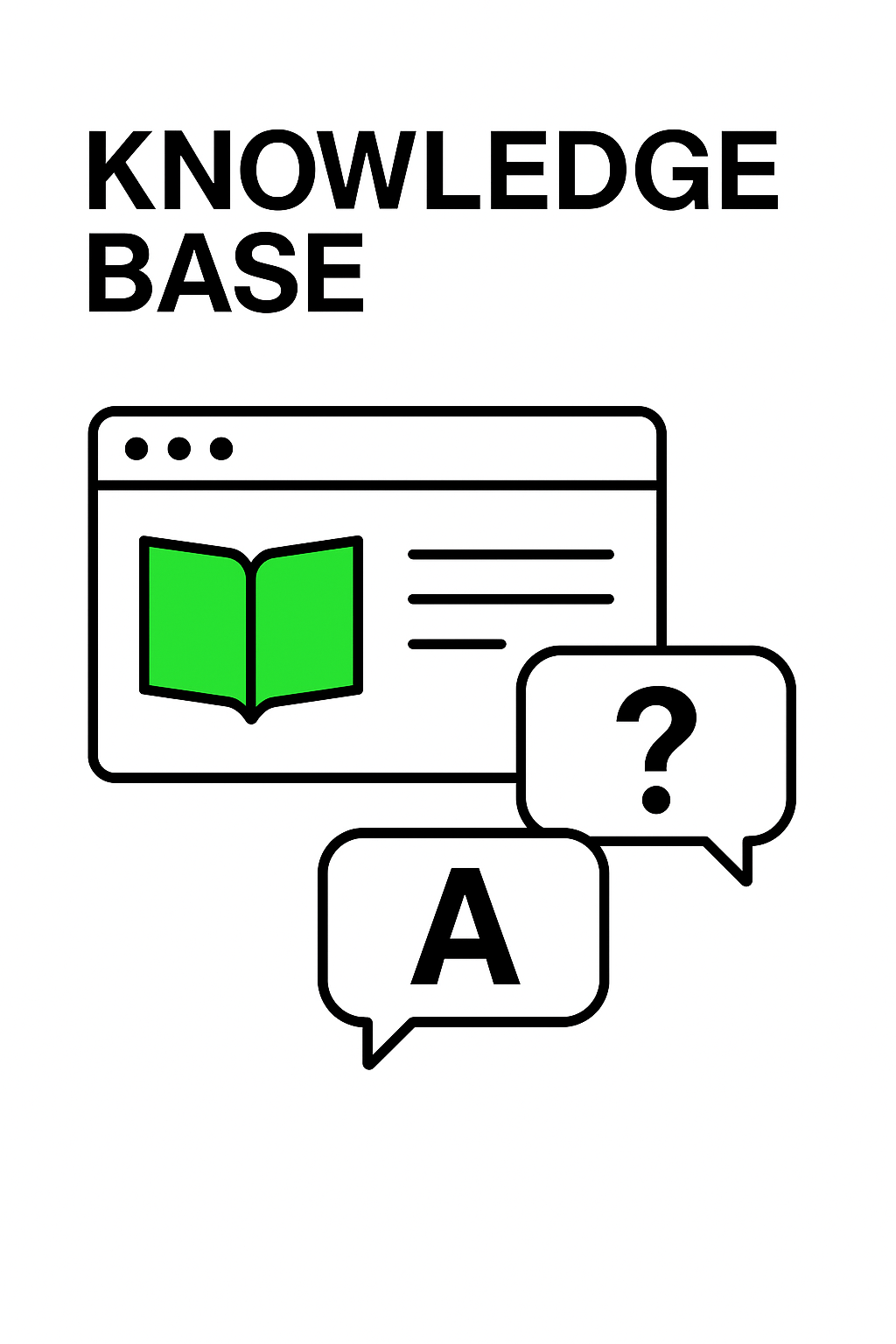 Minimalist graphic representing a knowledge base concept with line art icons, ideal for tech support or informational content.