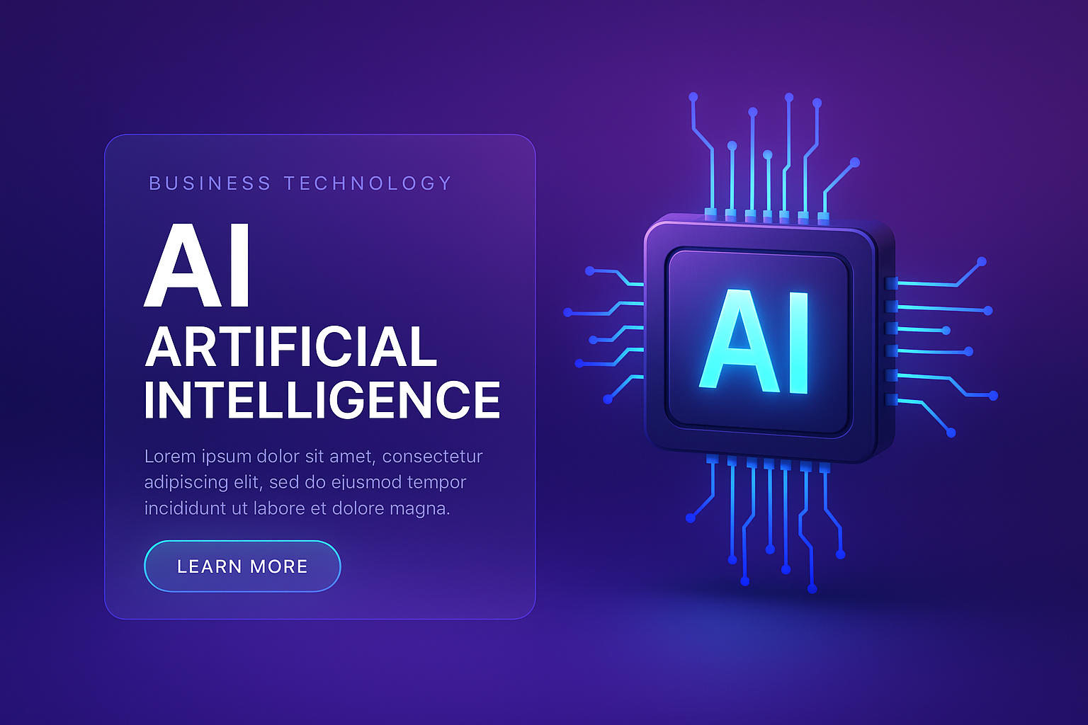 /Collection: /by davooda/Type: PNG/A sleek illustration featuring a glowing AI chip surrounded by circuit patterns on a dark purple gradient background. The layout includes glassmorphism panels for modern aesthetics.
