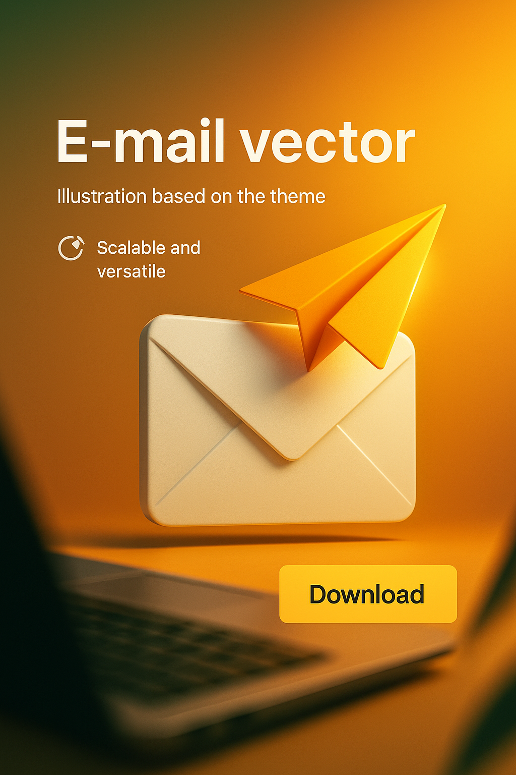 A digital illustration showcasing an email icon with a paper plane motif, designed for promotional use. The graphic features a modern aesthetic with warm colors.