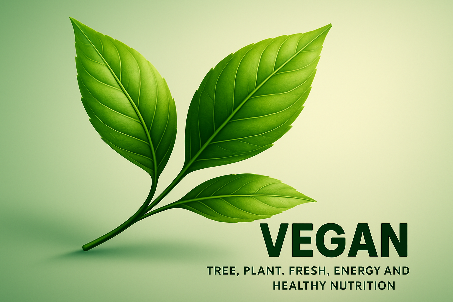 /Collection: /by davooda/Type: PNG/A vibrant illustration of green leaves on a gradient background, emphasizing themes of veganism and healthy nutrition. The leaves appear dynamic and realistic, adding energy to the composition.