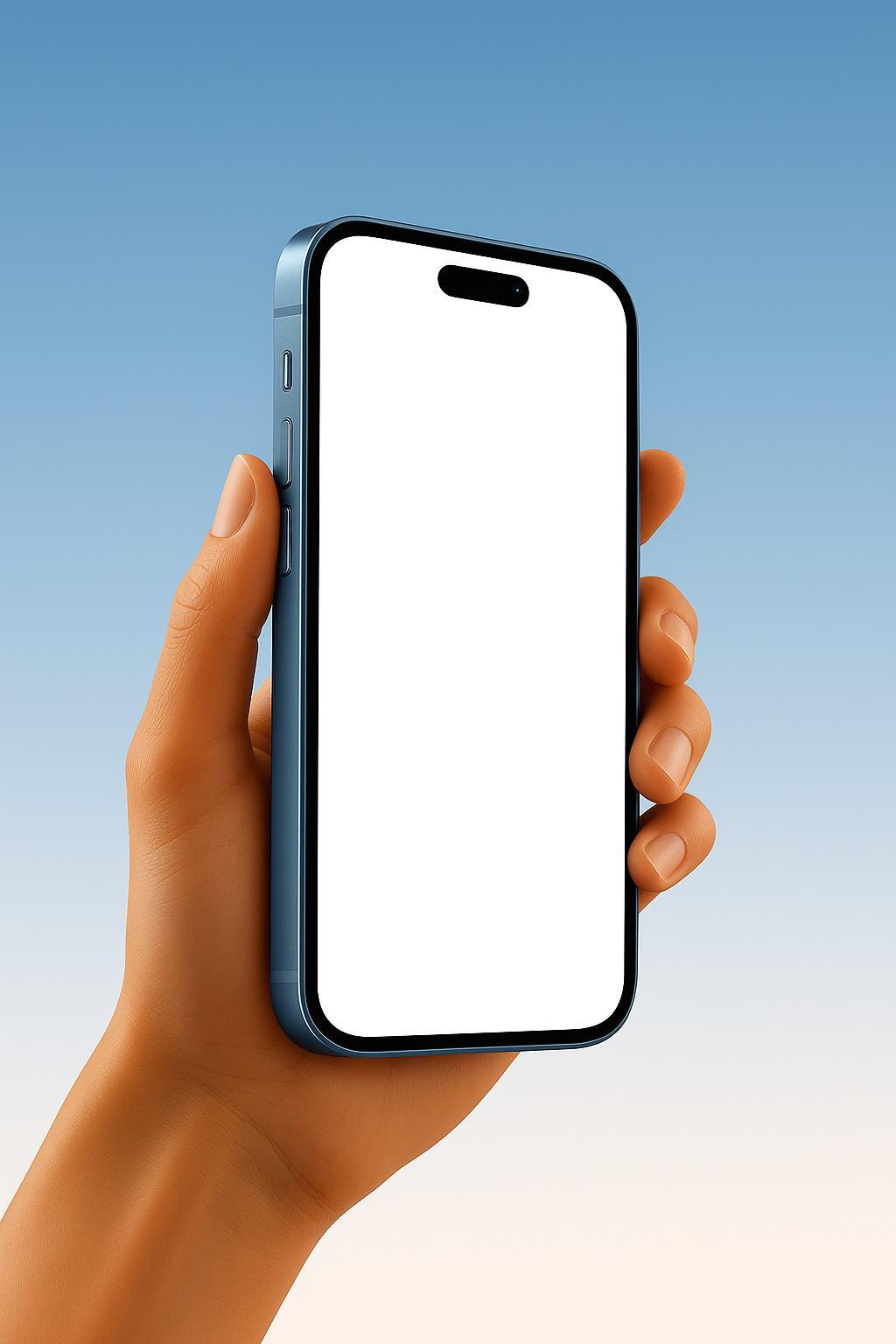 Blue Smartphone Held with Blank Screen Against Gradient Background